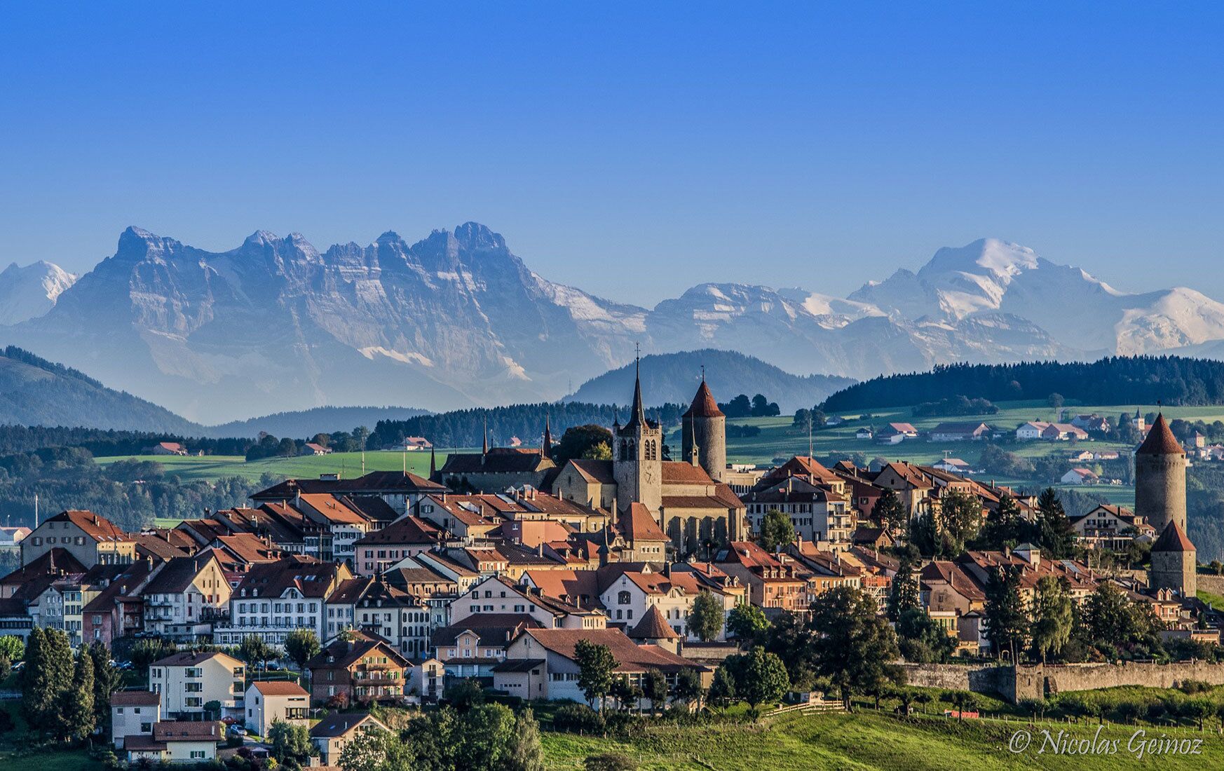 Sis au cœur de la Suisse romande sur la transversale ferroviaire Genève-Romanshorn, à mi-chemin entre Lausanne (34 min) et Berne (43 min) et à moins d’une demi-heure de Fribourg, Bulle ou Vevey, le majestueux bourg médiéval de Romont (5’262 hab.) enregistre un développement réjouissant (+13% depuis 2010). Il est devenu un nœud ferroviaire de première importance, avec l’ouverture des nouveaux RER vers Bulle et Fribourg, et enregistre désormais plus d’une centaine de haltes quotidiennes. Près de la moitié de la population active y est pendulaire et 7 personnes sur 10 sont de nationalité suisse.